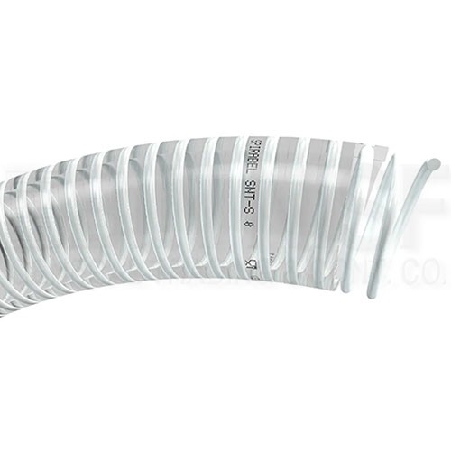 Reinforced with a white, rigid and shock-proof PVC spiral in a transparent soft PVC wall