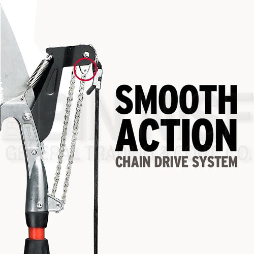 - Heavy-duty chain drive, compound-action pulley system triples your cutting power