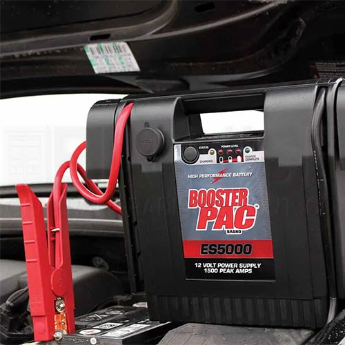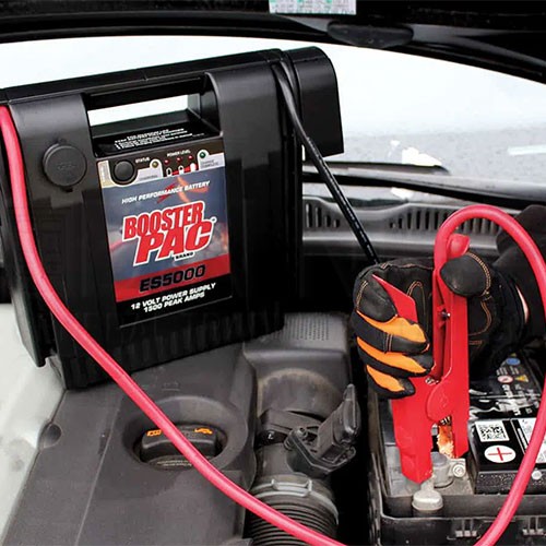 - The ES5000 Jump Starter from Clore Automotive is the everyday workhorse of the Booster PAC line. With a high-performance battery, 43-inch cable reach and automatic charging, it is the perfect jump starter for cars, trucks, boats and more