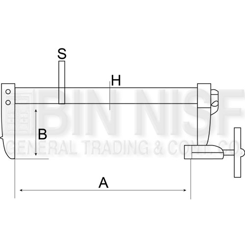 Professional f clamp with one fixed and one sliding bracket fitted to a galvanised profiled steel rail