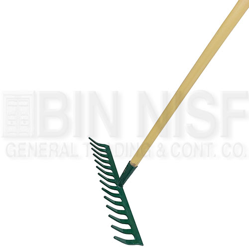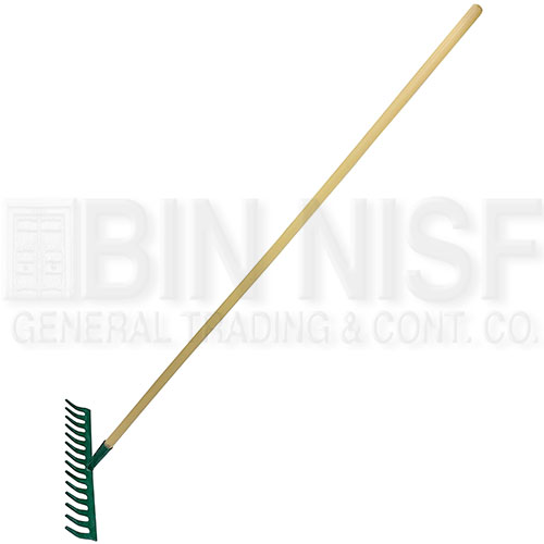 Garden rake with wood handle