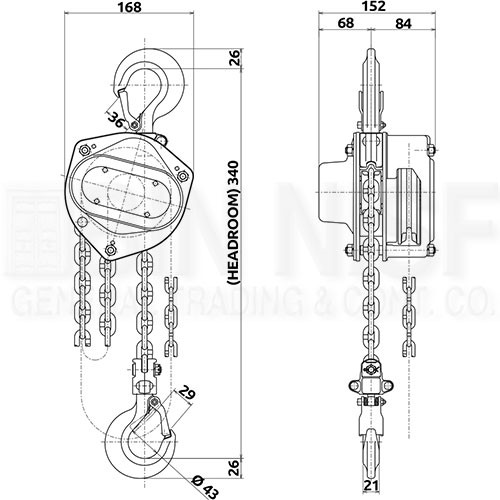 Length of load chain lifted by pulling hand chain 1m |