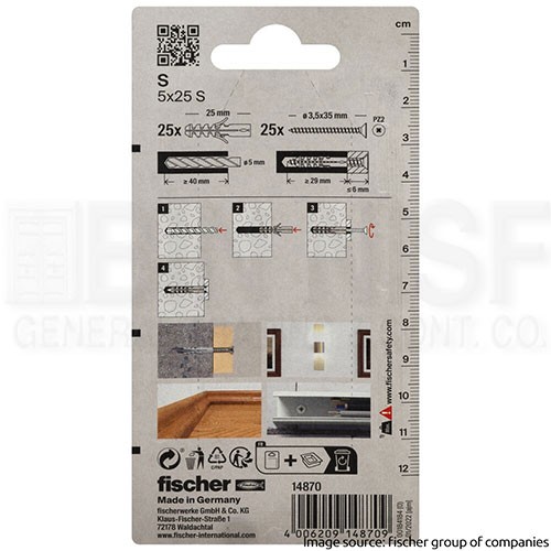 fischer plug fischer plugs fischer duopower 25 pcs 25 piece fischer Expansion plug S 5 with screw