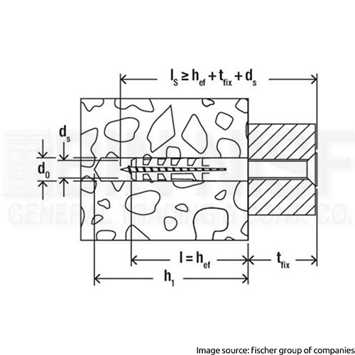 Min. drill hole depth (h1)